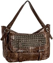 Studs and embossed foil leather lend plenty of zip to the Hawke Sultan shoulder bag from Tylie Malibu. Ideal for toting on work-to-play days, this roomy bag includes an exterior pocket for quick stowing of keys and cell, plus a zippered main compartment that'll easily tote everything else.